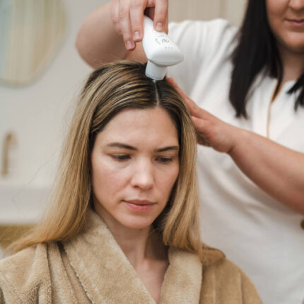 Procedūra skirta silpniems, nualintiems plaukams, kuriems reikia atstatymo ir stiprinimo. Jos metu švelniai eksfolijuojama galvos oda, pašalinamos negyvos odos ląstelės, reguliuojama riebalinių liaukų veikla ir stiprinama plauko struktūra. Po procedūros...