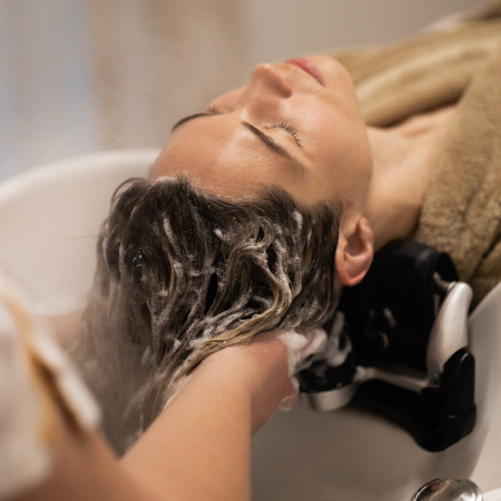 Pašalinami nešvarumai ir paruošiama plaukų struktūra.